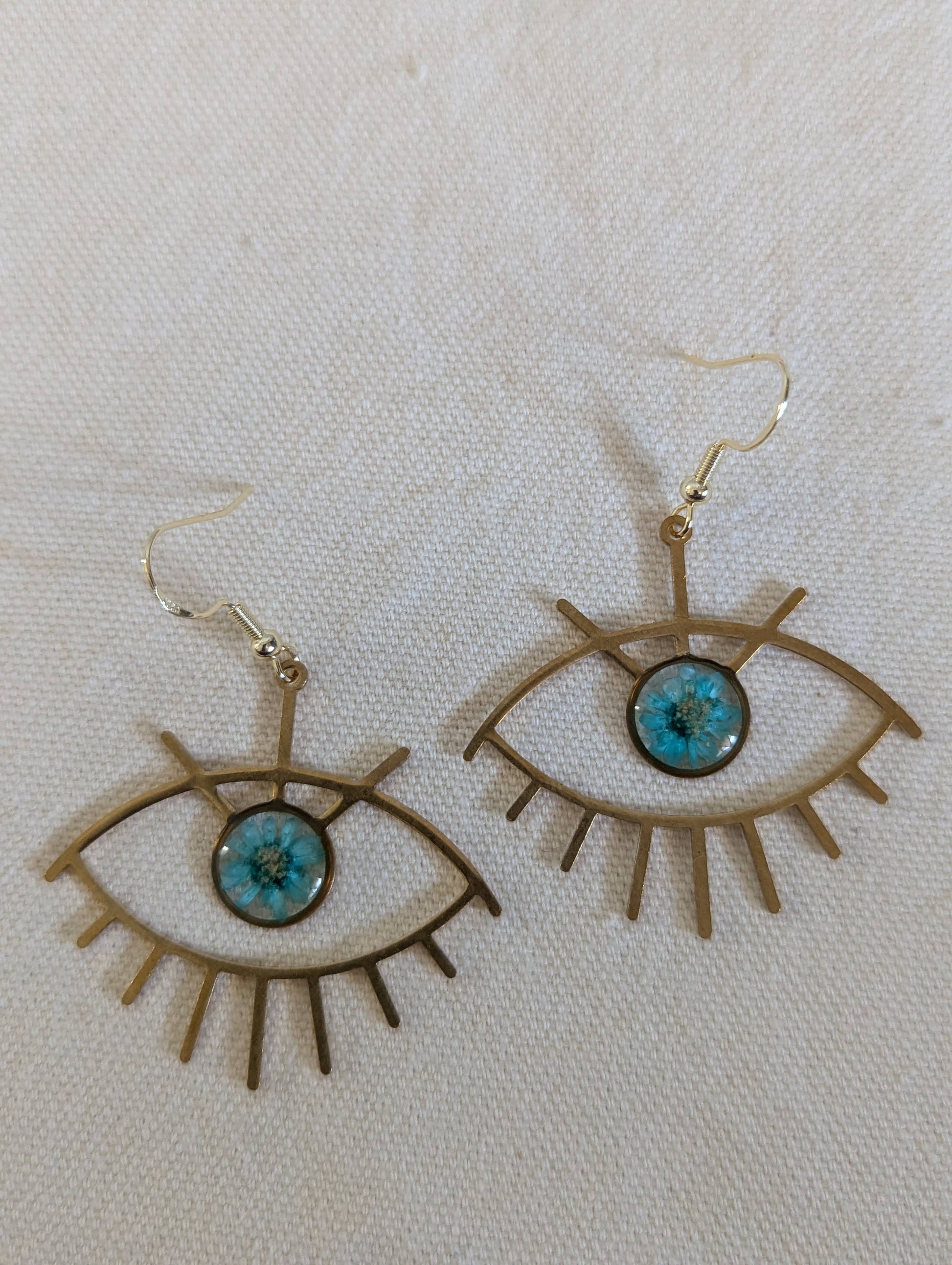 Light Blue Daisy Brass Eye Earrings
