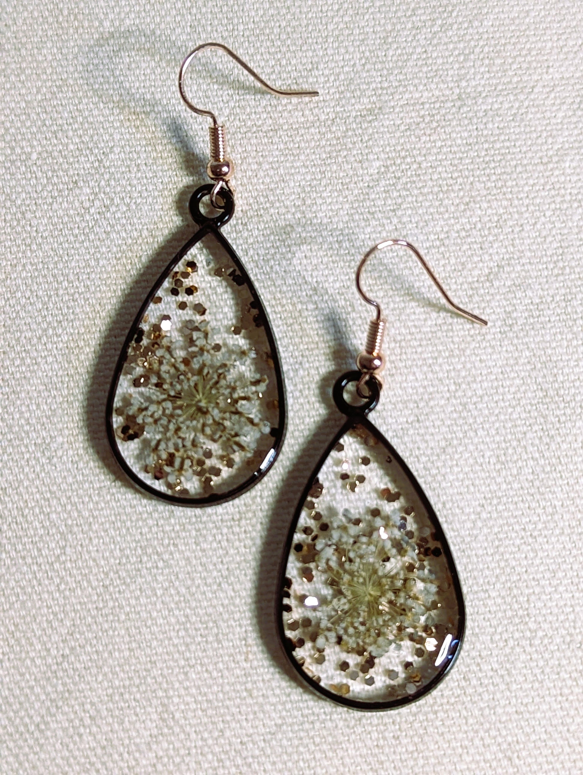 Queen Anne's Lace & Copper Glitter Droplet Earrings